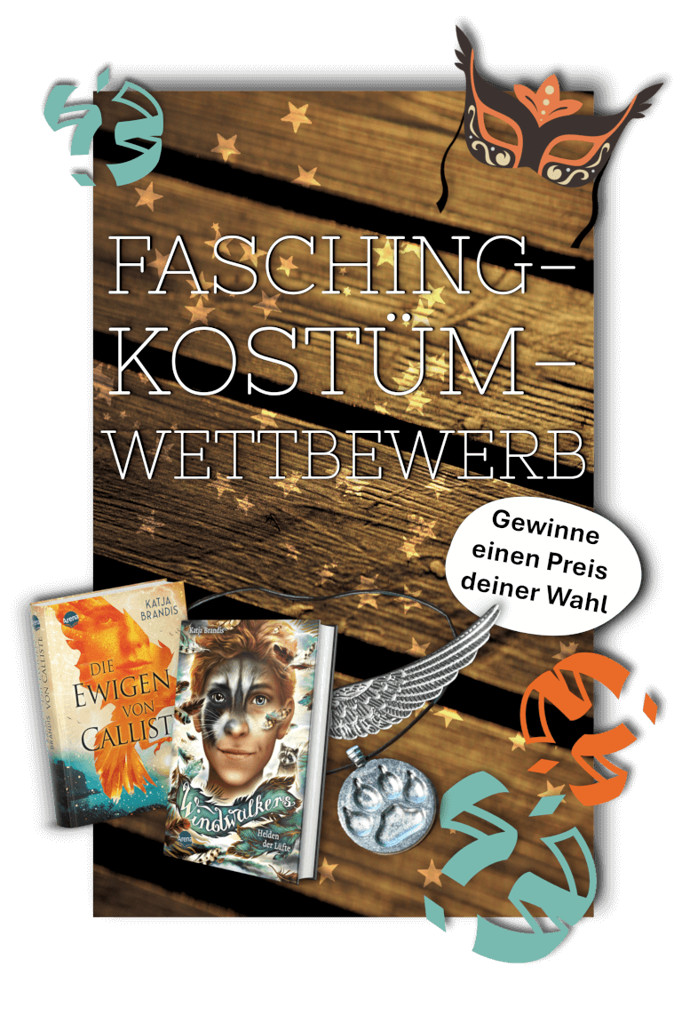 Ein neuer Wettbewerb wartet auf euch! Passend zu Fasching gibt es für euch diesmal einen Kostüm-Wettbewerb! Du möchtest mitmachen? Dann schlüpfe in die Haut deines Lieblingscharakters. Die Jury (mein Team und ich) wählt dann die fünf besten Cosplay-Kostüme aus – die glücklichen Gewinner*innen dürfen sich von mir einen Preis aussuchen, z.B. ein signiertes Buch oder Merchandise. Lasst eurer Kreativität freien Lauf – wir sind gespannt auf das Ergebnis!